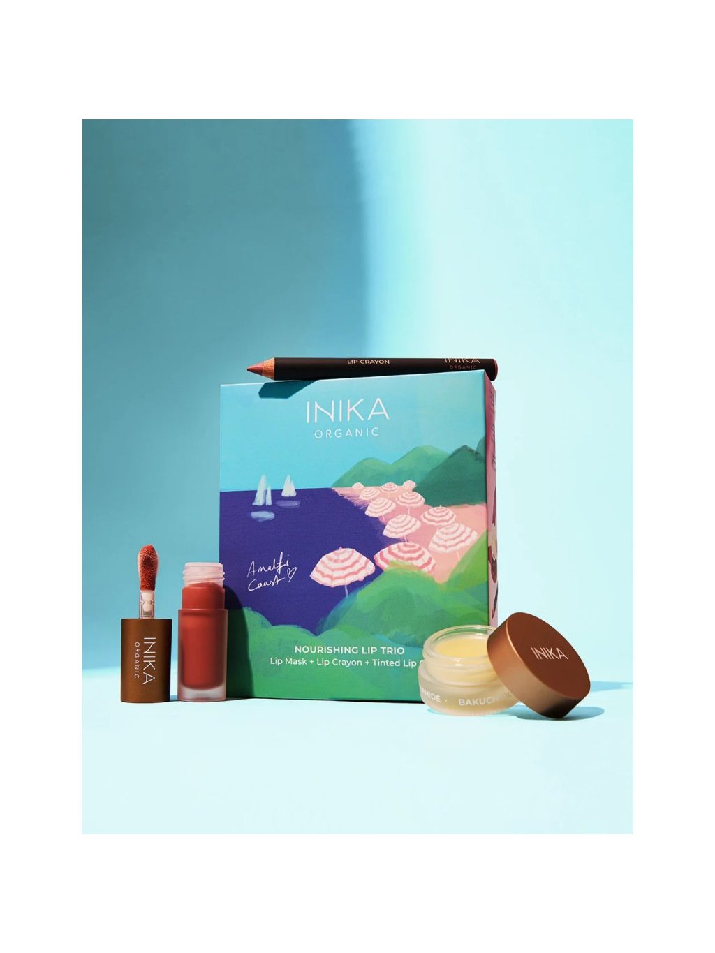 Toto trio, které obsahuje dvě novinky a nejprodávanější oblíbený produkt, zkrášluje rty díky ingrediencím šetrným k pokožce a dodává jim plný vzhled, který si zaslouží polibek. Součástí balení je vyživující maska na rty s bakuchiolem a AHA kyselinami, která jemně exfoliuje, hydratuje a vyhlazuje povrch rtů. Zlepšuje jejich měkkost, pružnost a připravuje je na následné líčení. Druhým produktem je krémová rtěnka-tužka v odstínu Pink Nude, která rty zvýrazní přirozeným odstínem, dodá jim výživu a díky jemné textuře se snadno roztírá. Look dokončí tónovaný olej na rty Blossom, který obsahuje skvalan a rostlinný kolagen. Ten dodává rtům dlouhotrvající hydrataci, jemný lesk a zdravě plnější vzhled.