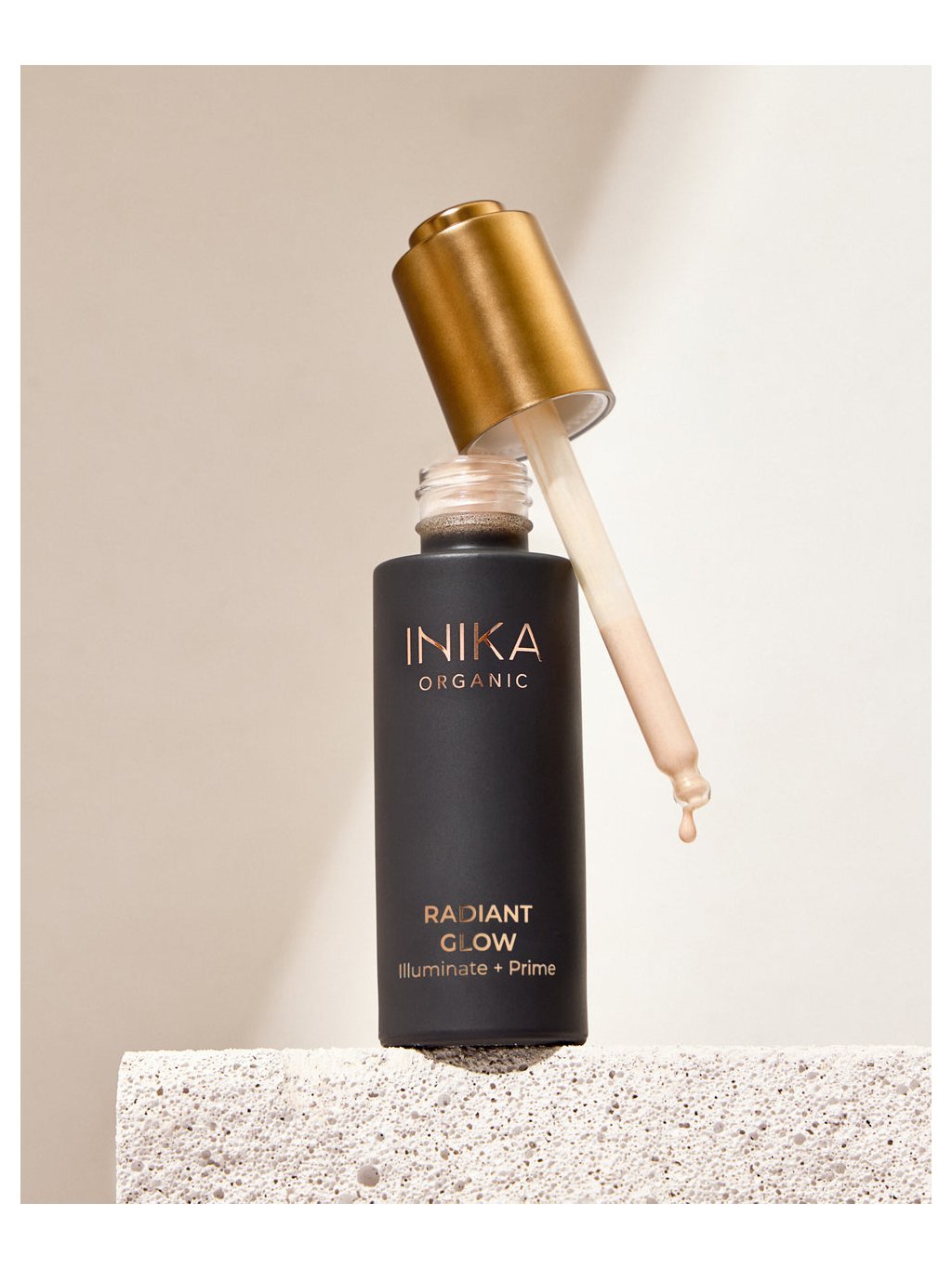 Lehká, rychle se vstřebávající textura bez alkoholu obsahuje technologii odrážející světlo pro přirozený „dewy“ efekt a hedvábně hladký vzhled. Díky obsahu přírodních a organických složek pleť nejen zkrášluje, ale zároveň vyživuje, zpevňuje a chrání. Inika Organic Radiant Glow je nenahraditelným pomocníkem pro bezchybné líčení. Používejte Radiant Glow jako podkladovou bázi pod make-up, ten si tak zajistí svojí svěžest a dlouhotrvající efekt. Večer bude váš make-up stejně svěží jako po ránu.