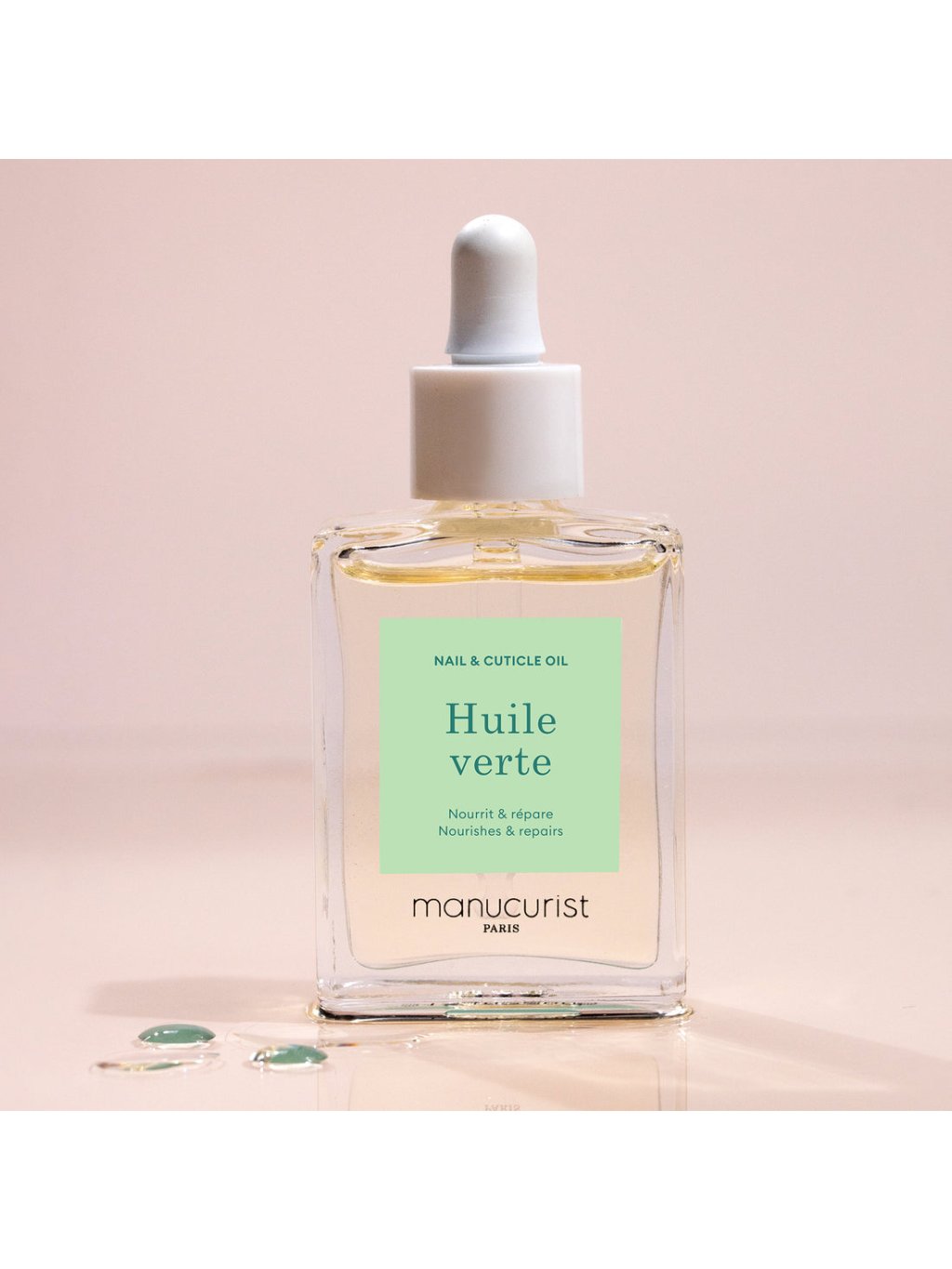 Tento olej je 99,5 % přírodního původu a je navržen tak, aby se velmi rychle vstřebal. Zapomeňte na nepříjemně mastný film – Huile Verte zanechává nehty vyživené, lesklé a pokožku sametově hebkou.